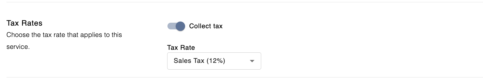 If you don't have any tax rates created, visit the Tax Rates settings section to learn how to add them.