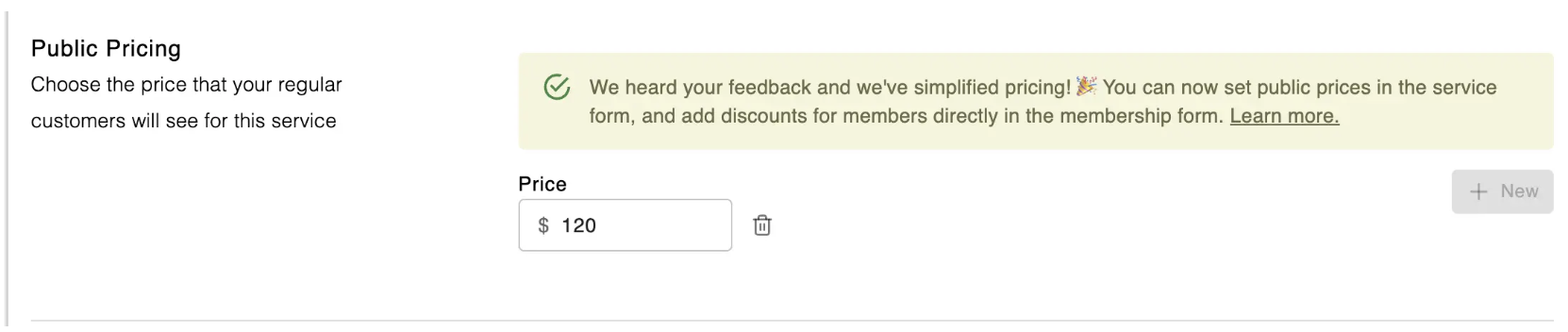 By default, your lesson will have no associated prices. In that case, it will only be bookable using credits (see Packages or Memberships for more context on how credits work).