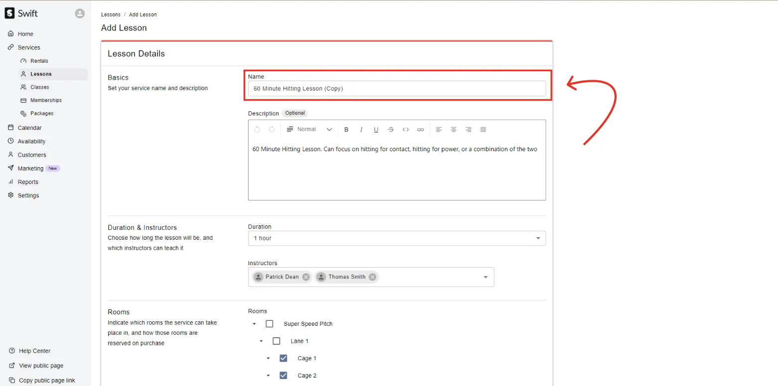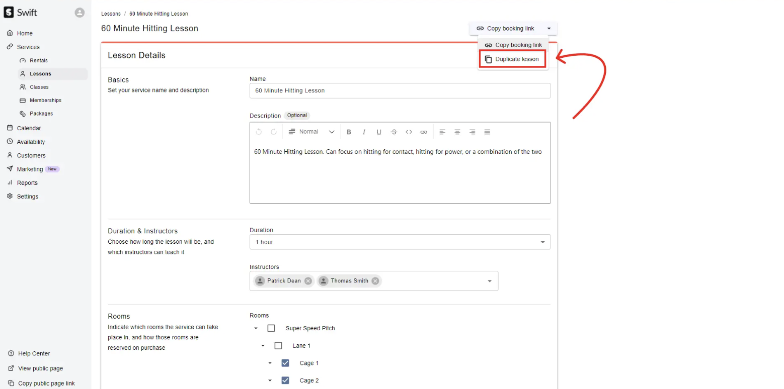 Click into the existing lesson on the Services > Lessons page that you want to duplicate.