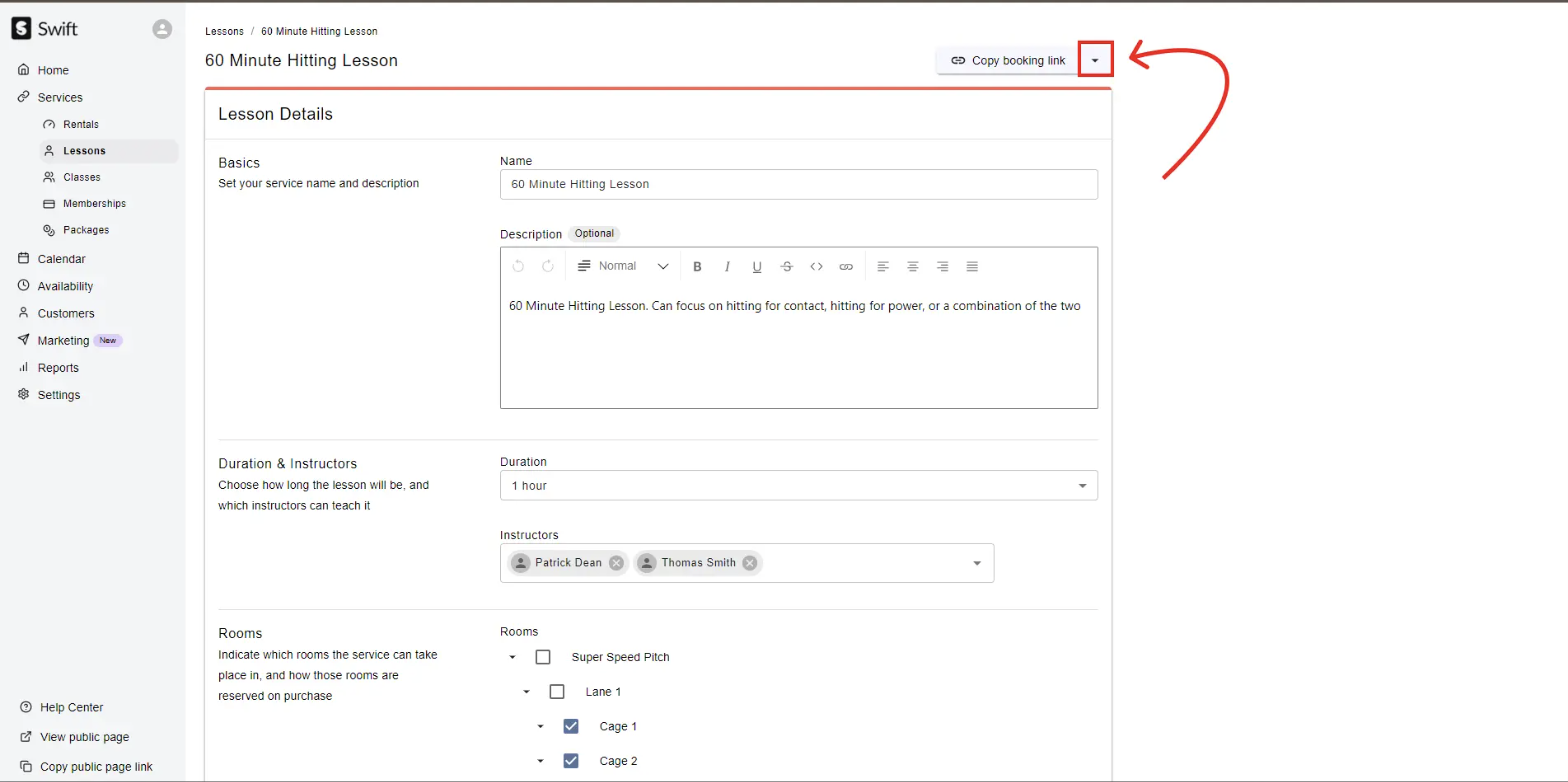 Want to send a direct link to book a lesson to a customer? Perhaps you have a private lesson that only specific customers can book? Or you would like to add a button on your website that takes customers directly to this lesson?