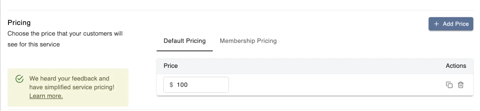 In this section, you can decide how much you want to charge for booking this lesson. Additionally, you can also set a special price for specific membership groups.