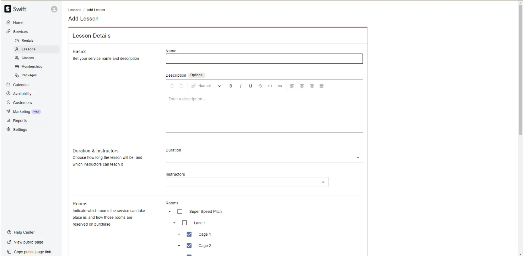 You will land on the "Add Lesson" service form, which is what you'll need to fill in order to create the lesson.