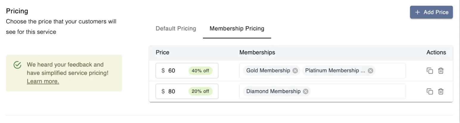 In the Memberships field, select all the membership groups that you'd like this price to apply to.
