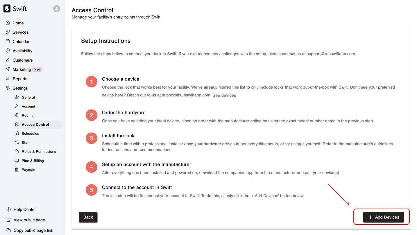 Once you've created the account, go ahead and click the "+ Add Devices" button within Swift