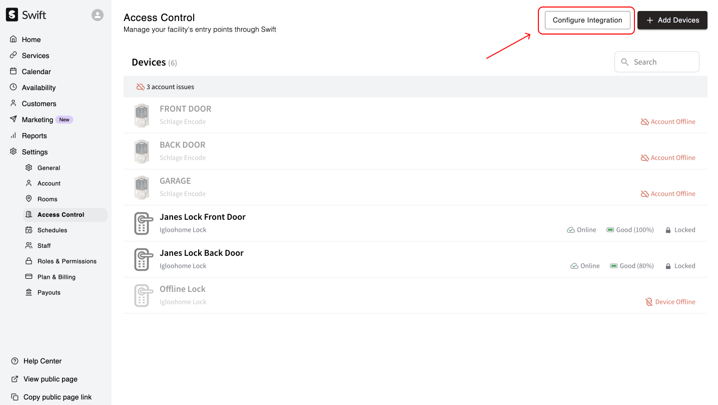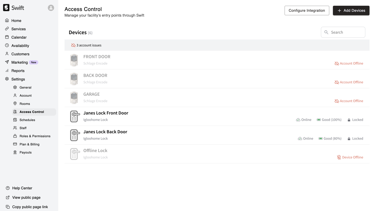Swift allows you to integrate with multiple smart door locks and access control brands to enable a truly automated facility. You can be completely hands off and manage your facility remotely!