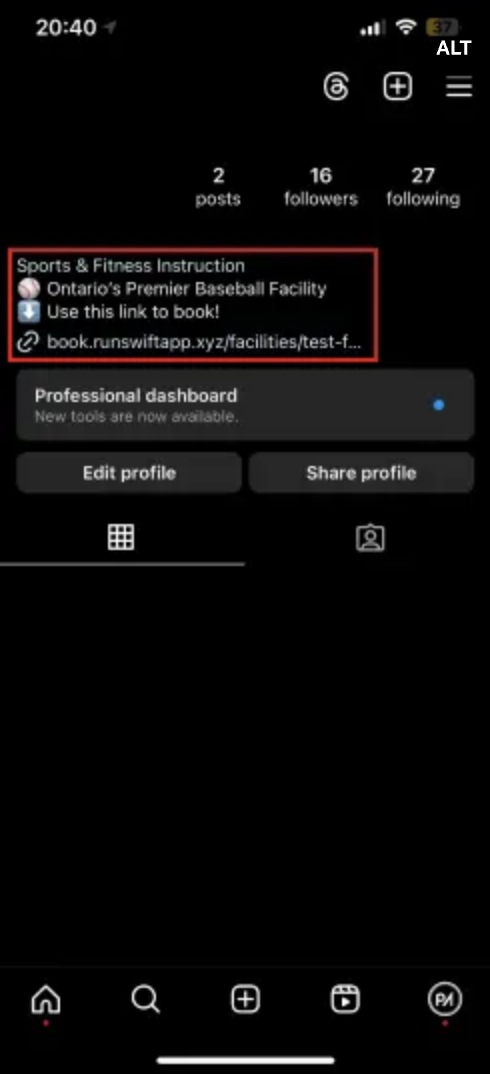 If you want to distribute your booking link across other social media platforms, such as Instagram, X, or YouTube, we recommend adding the booking link to your bio, as neither of these platforms has buttons that can be used like Facebook.
