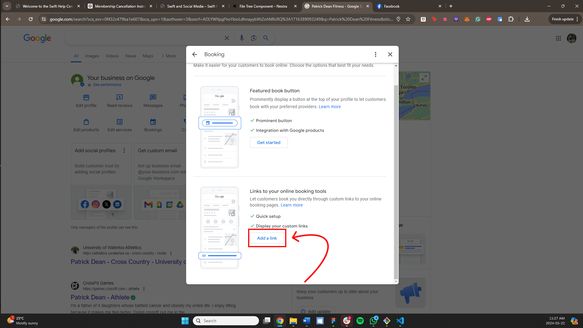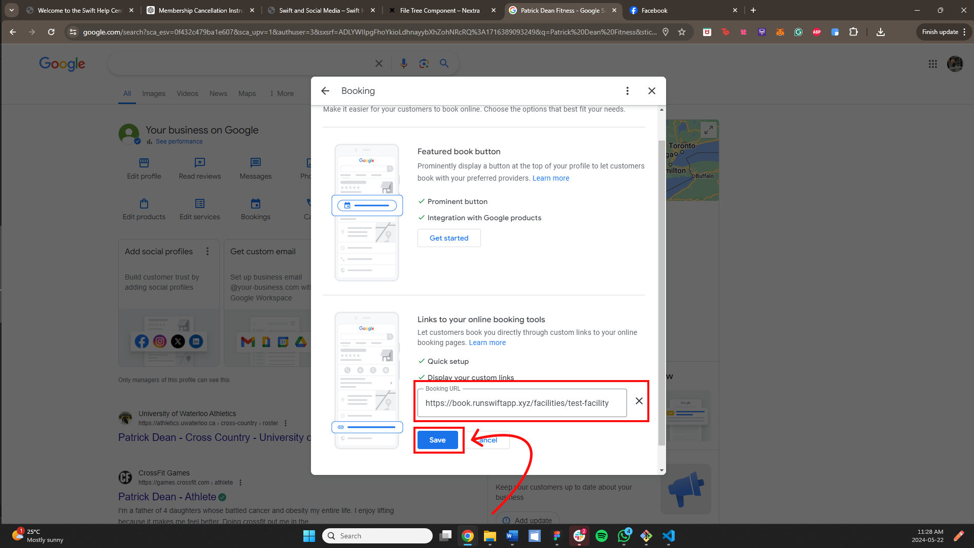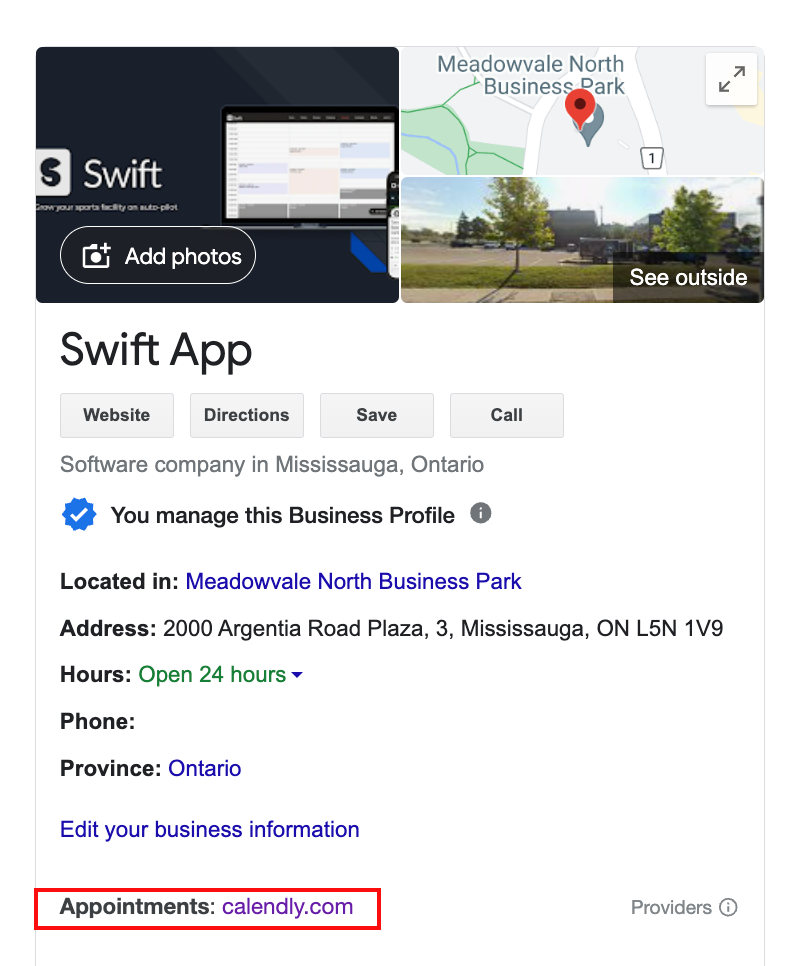 Please note that for the purposes of this help article, the booking link displayed is the one that can be found for Swift's Google Business Profile, not the one shown in the instructions. The image serves as a reference for where you can find your link after completing the steps outlined above.