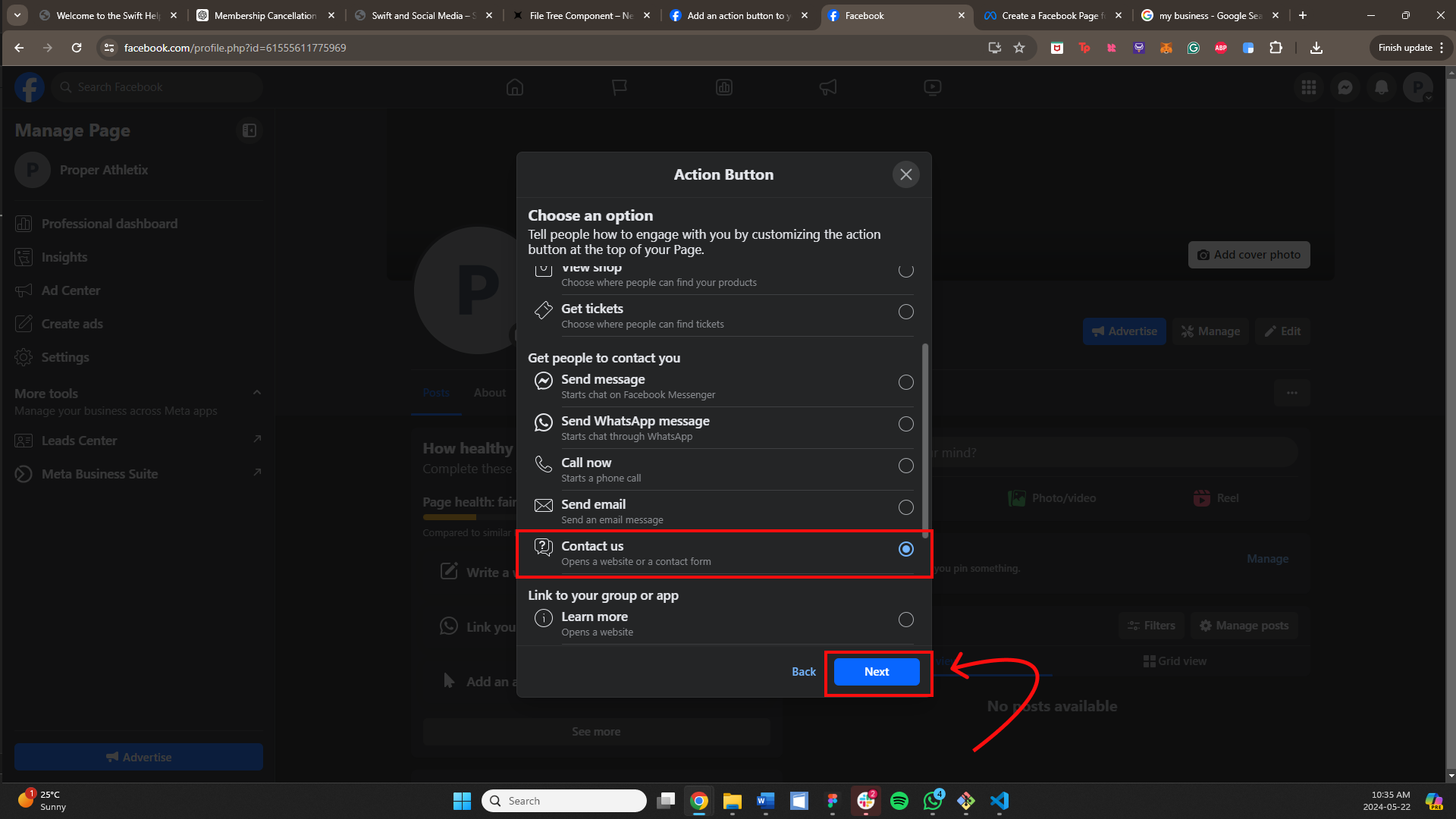 Now that you have a professional Facebook page, follow these instructions to add Swift to a button: