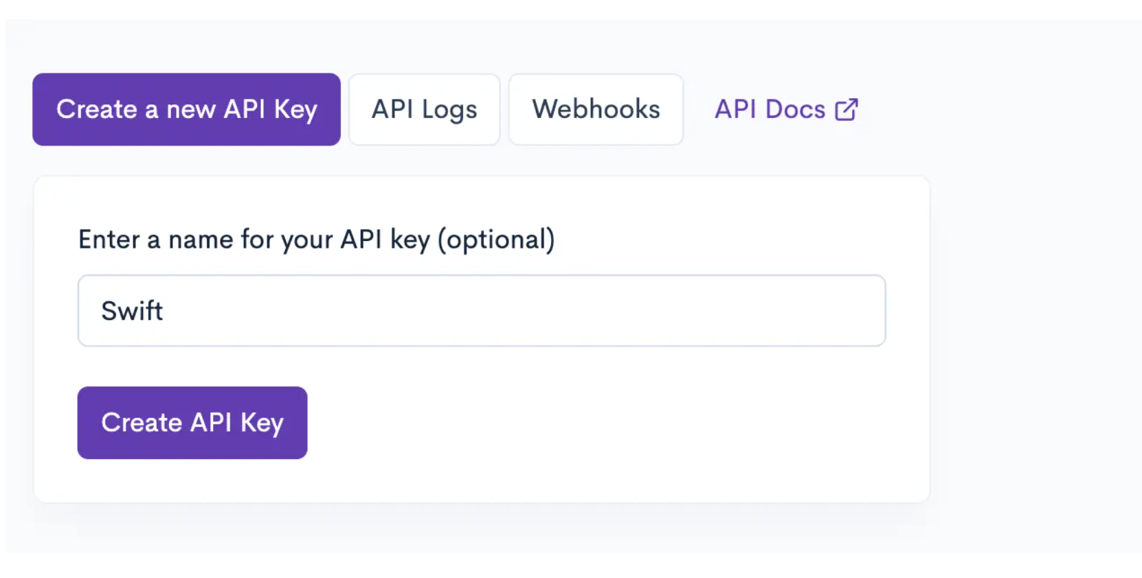Name the API key "Swift" so you can remember what it will be associated with, and hit "Create API key".