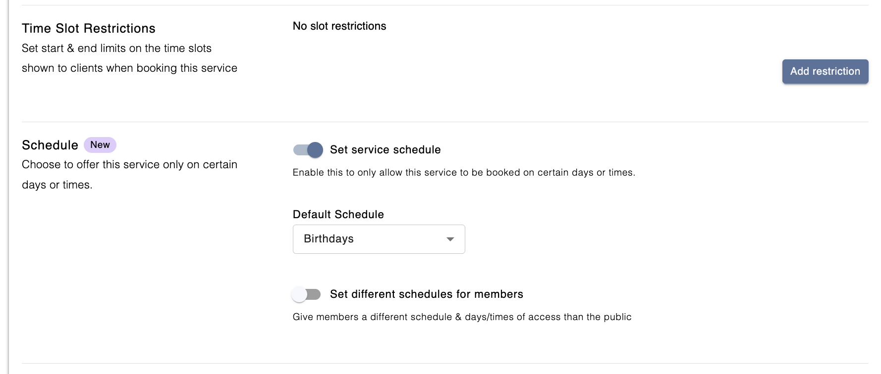 Choose the days and time blocks when you want the service to be available.
