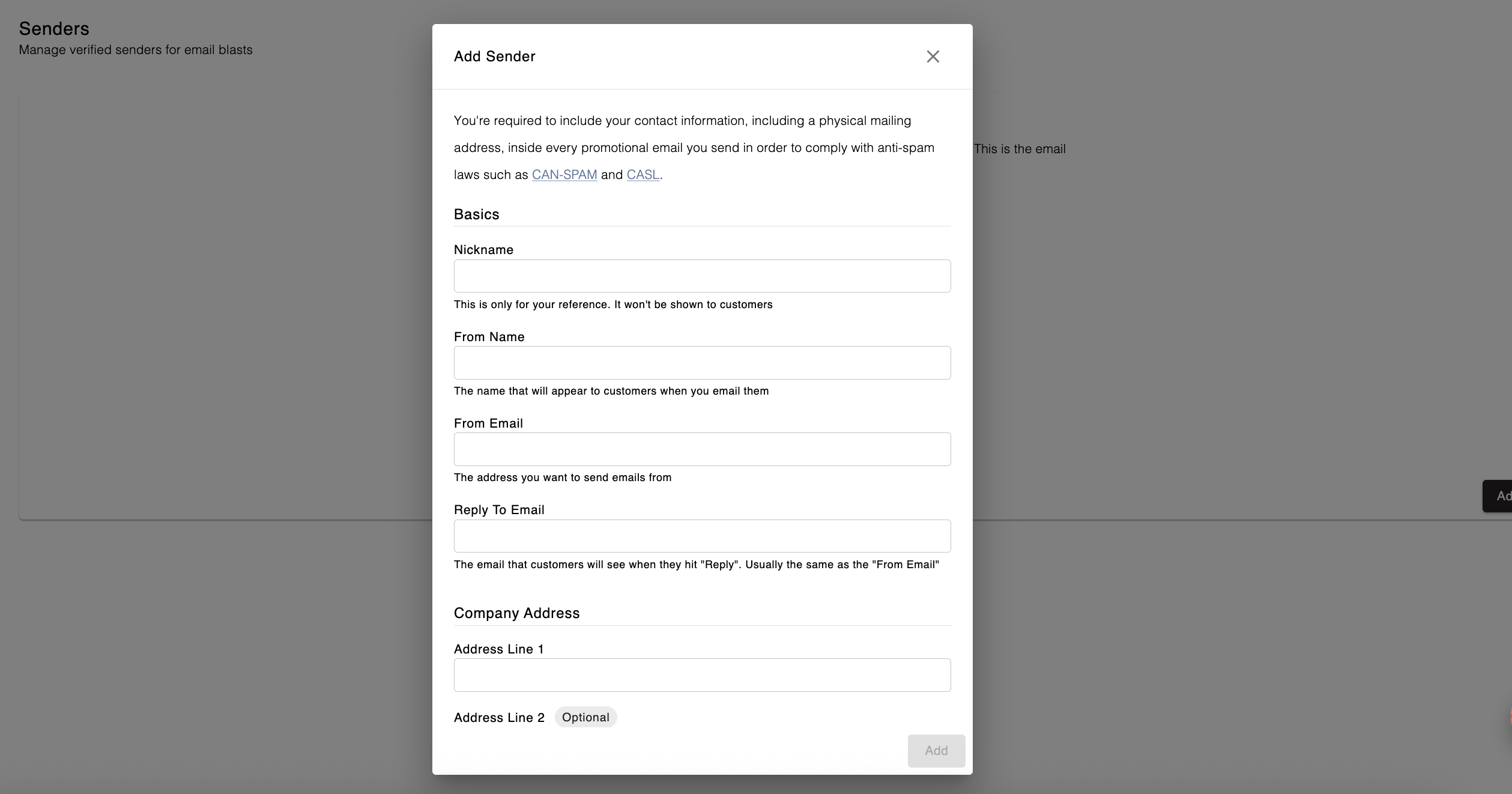 Fill out the Add Sender form