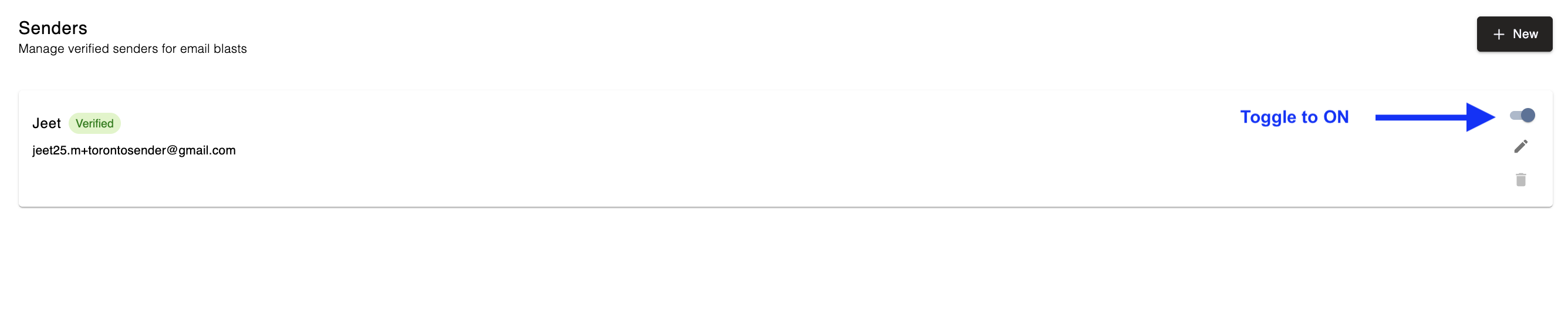 Toggle your verified Sender to ON