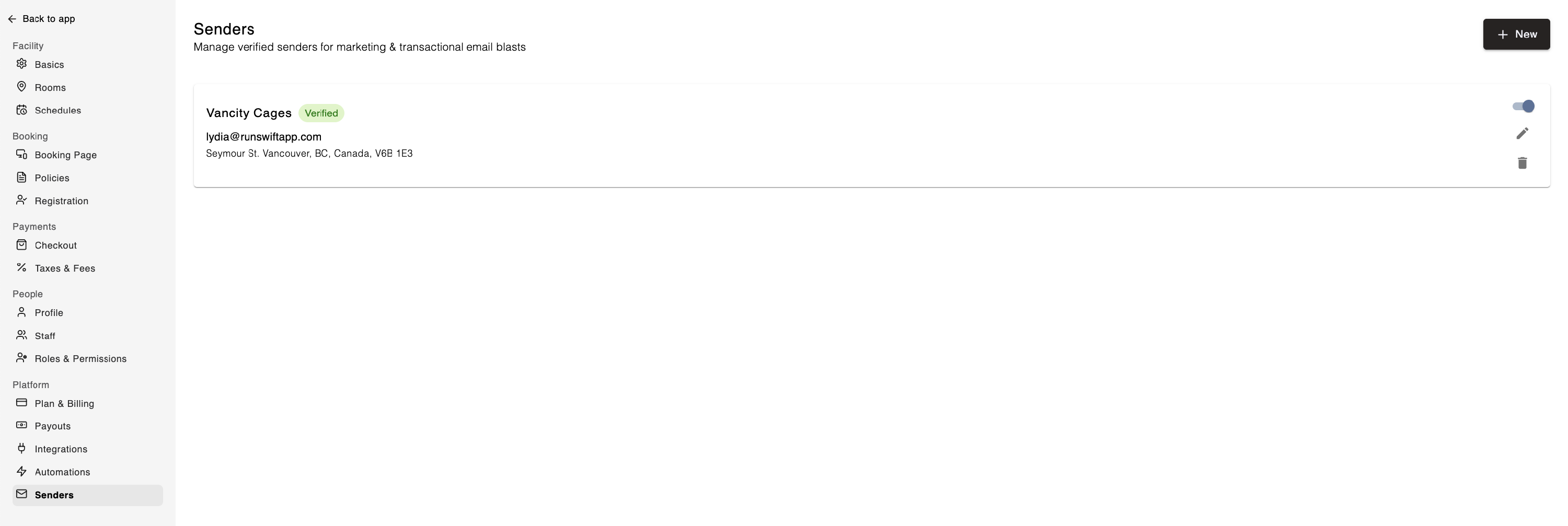 Once your Sender has been verified, go back to Settings > Senders in Swift Admin