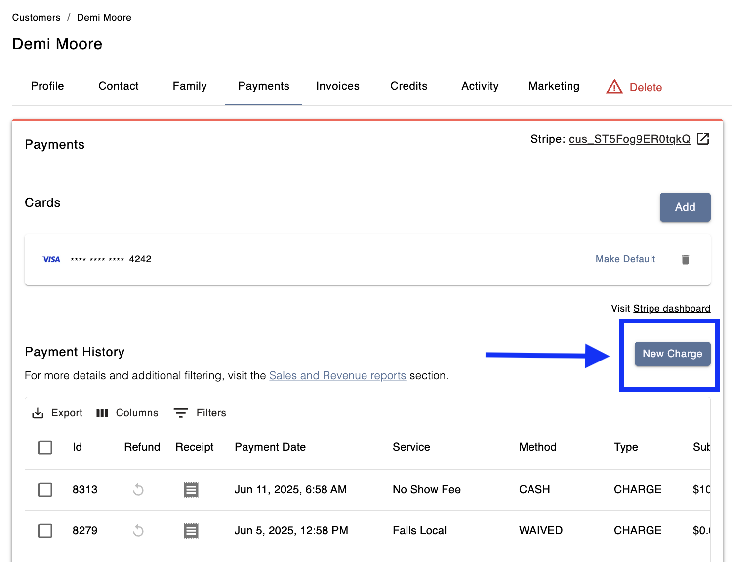 There may be times when you need to quickly charge a customer for something that doesn’t fall under your standard bookings or products — like add-on equipment, a registration fee, parking, or a custom event. Swift makes this easy to process with the New Charge feature.