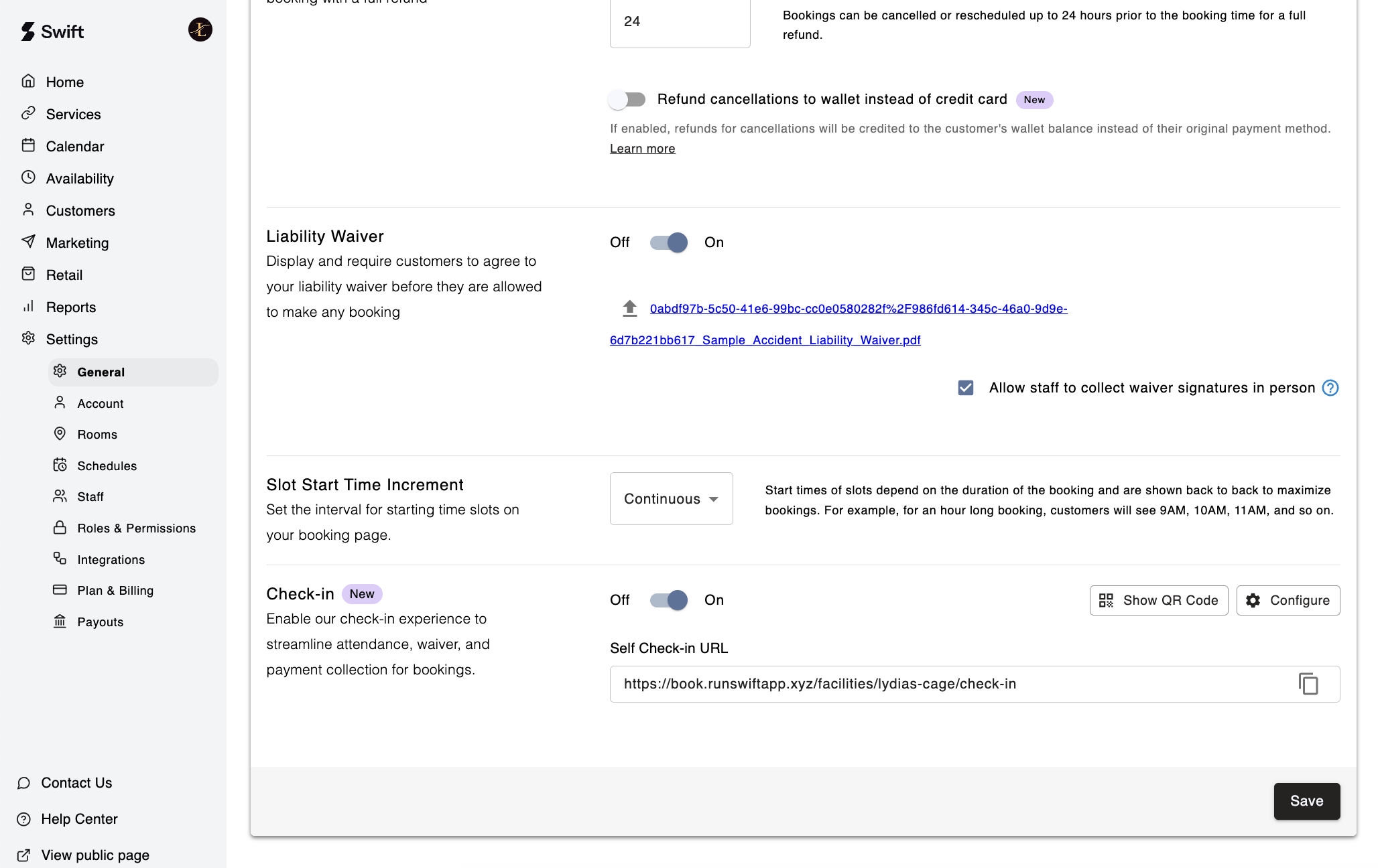 In your Swift Admin dashboard, go to Settings > General > Booking Policies